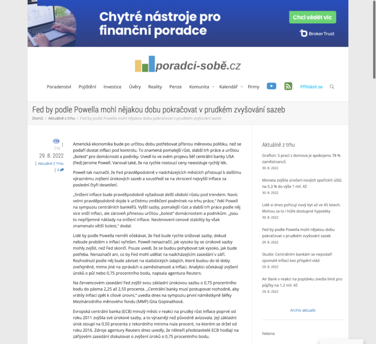 Americká ekonomika bude po určitou dobu potřebovat přísnou měnovou politiku, než se podaří dostat inflaci pod kontrolu. To...
