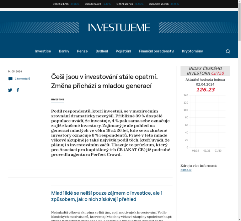 Podíl respondentů, kteří investují, se v meziročním srovnání dramaticky nezvýšil. Přibližně 39 % dospělé populace uvádí, že...